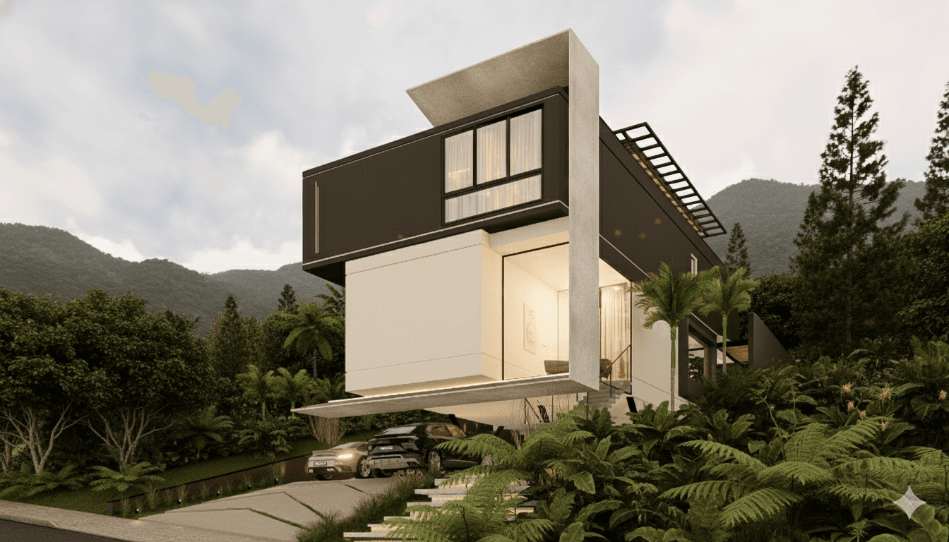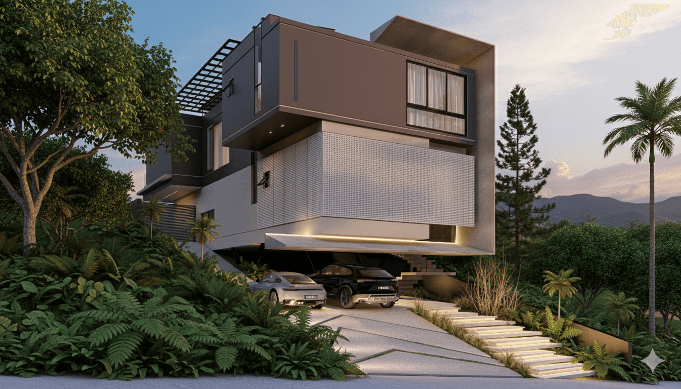Residência contemporânea de alto padrão desenvolvida para integrar conforto, estética e tecnologia em um terreno com declive acentuado. O projeto valoriza a volumetria limpa, o uso de materiais nobres e a relação fluida entre interior e exterior, privilegiando a vista e a iluminação natural.