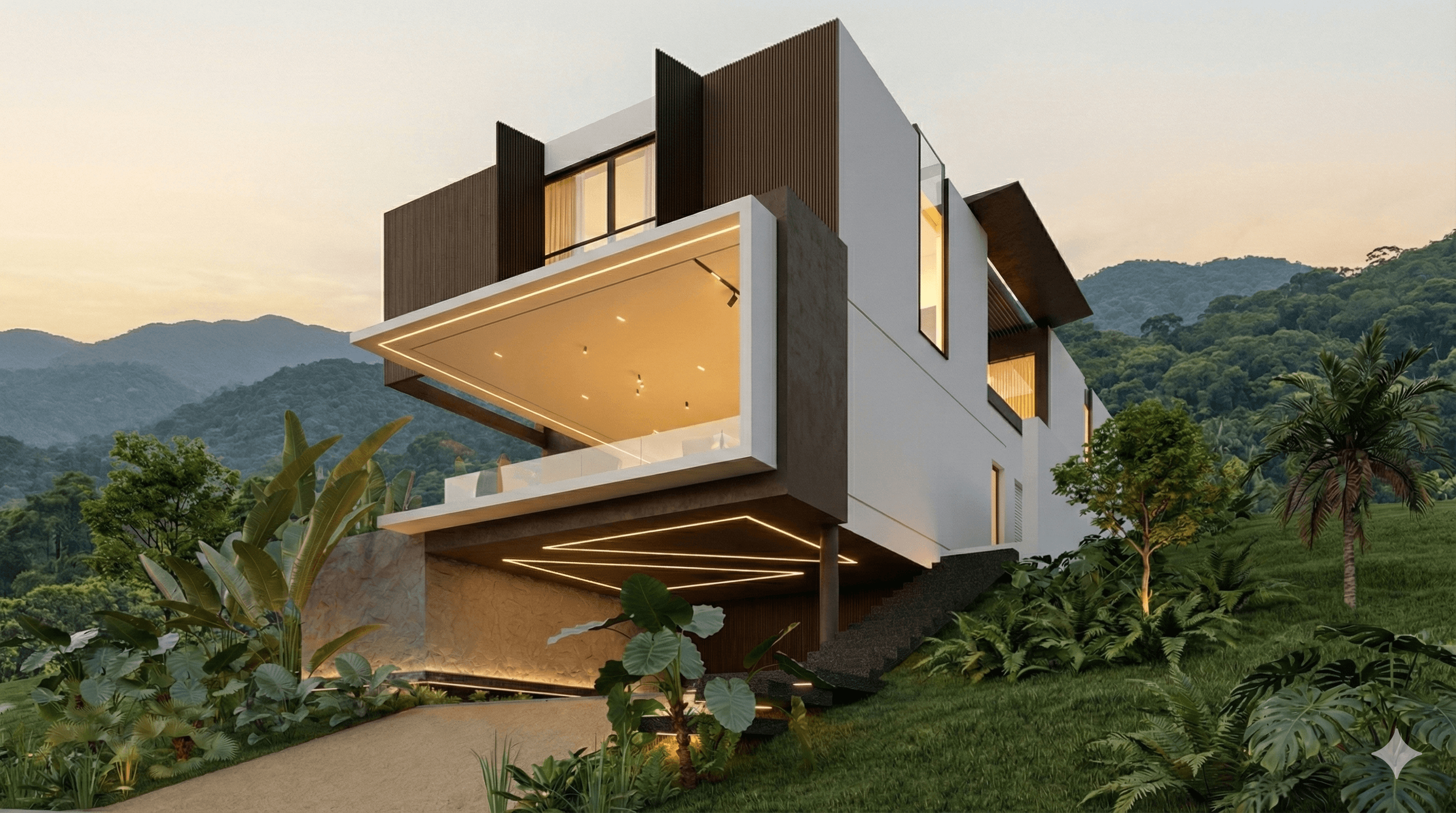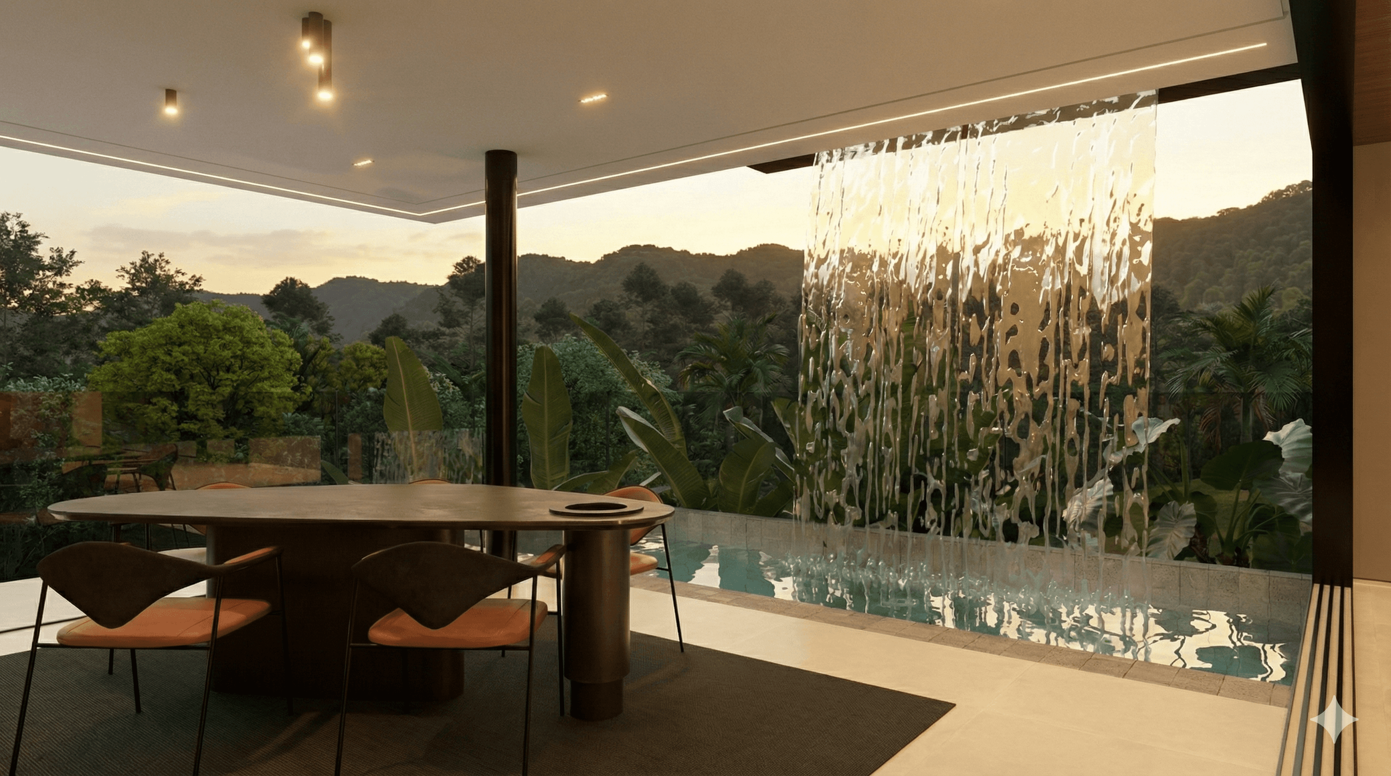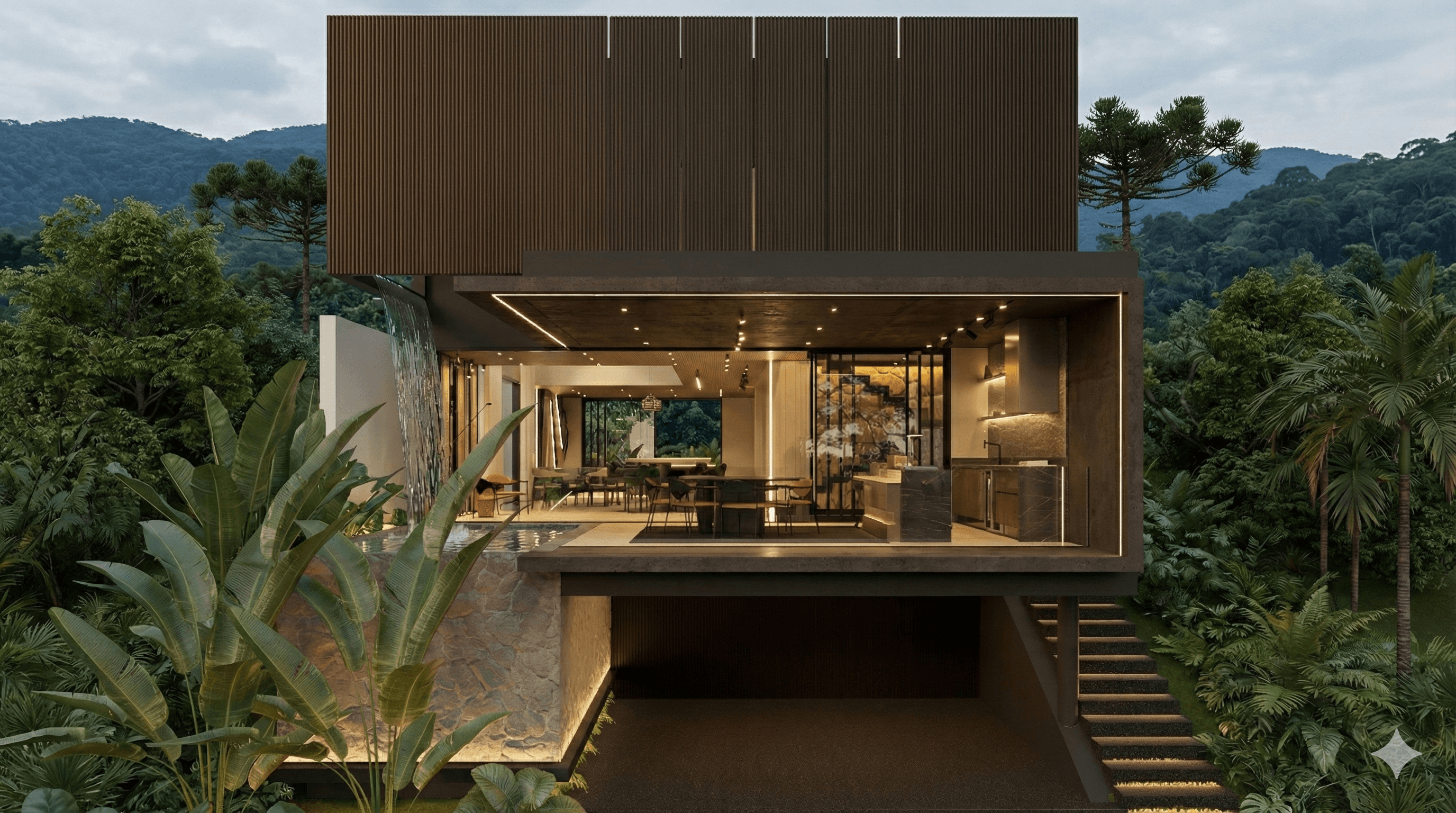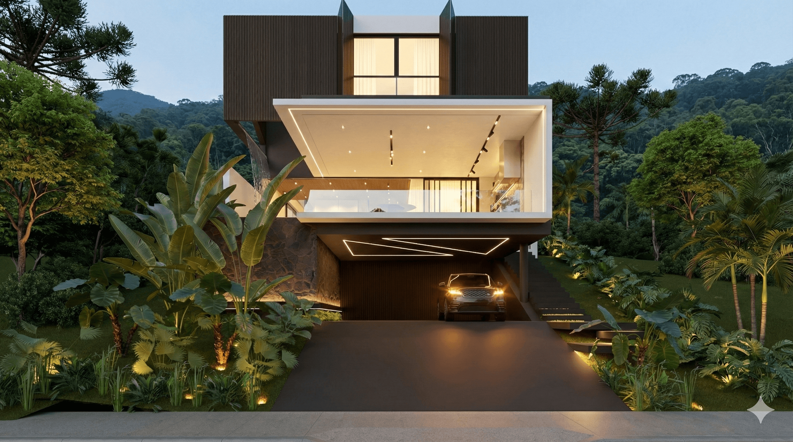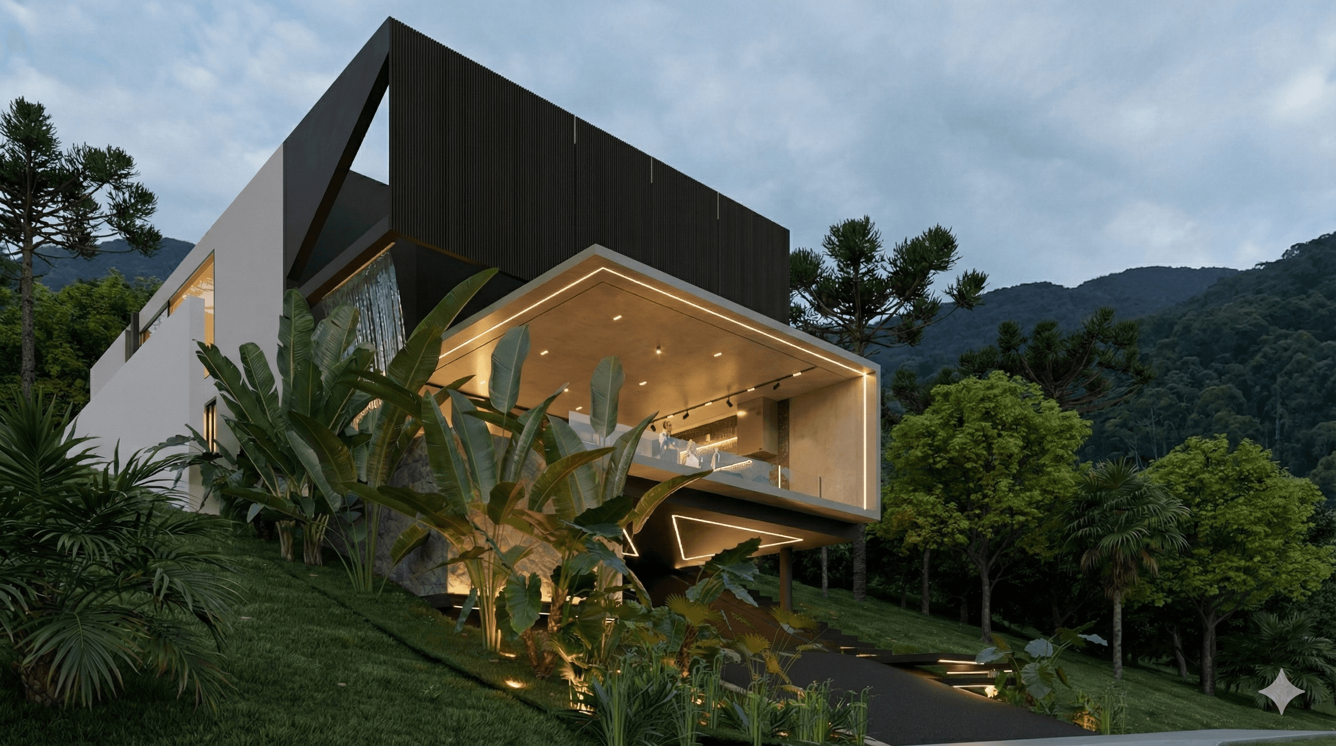 Residência contemporânea de alto padrão desenvolvida para integrar conforto, estética e tecnologia em um terreno com declive acentuado. O projeto valoriza a volumetria limpa, o uso de materiais nobres e a relação fluida entre interior e exterior, privilegiando a vista e a iluminação natural.